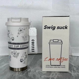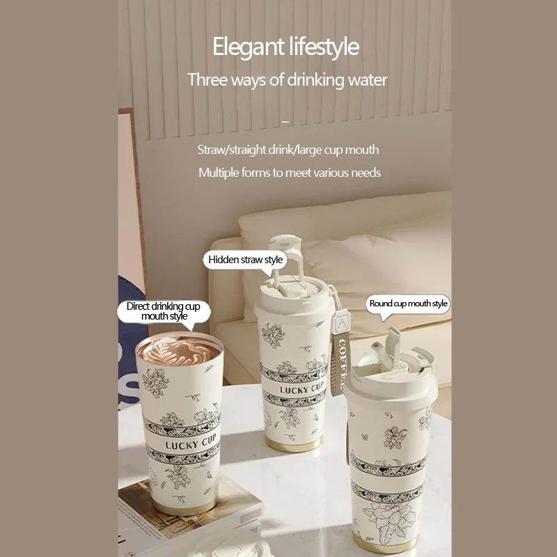Beautiful Coffee Cups Stainless Steel Thermal Cup Drink Items Tumbler Large Capacity Tea Espresso Travel Straw Coffeeware Dining